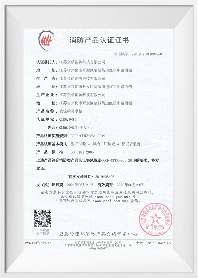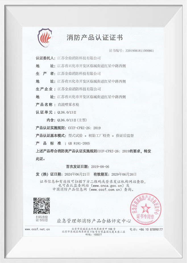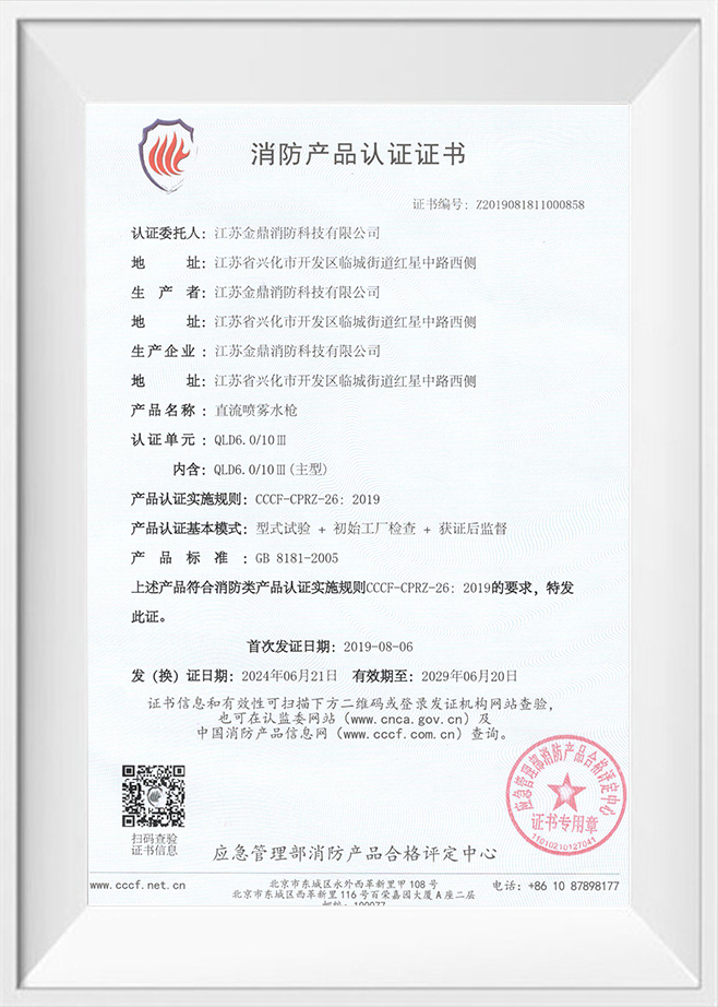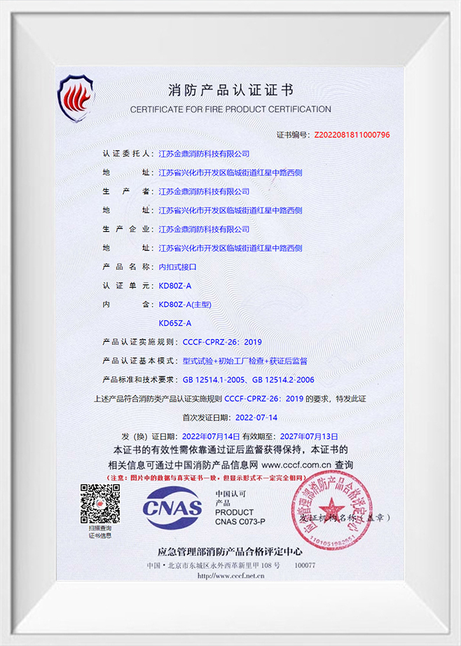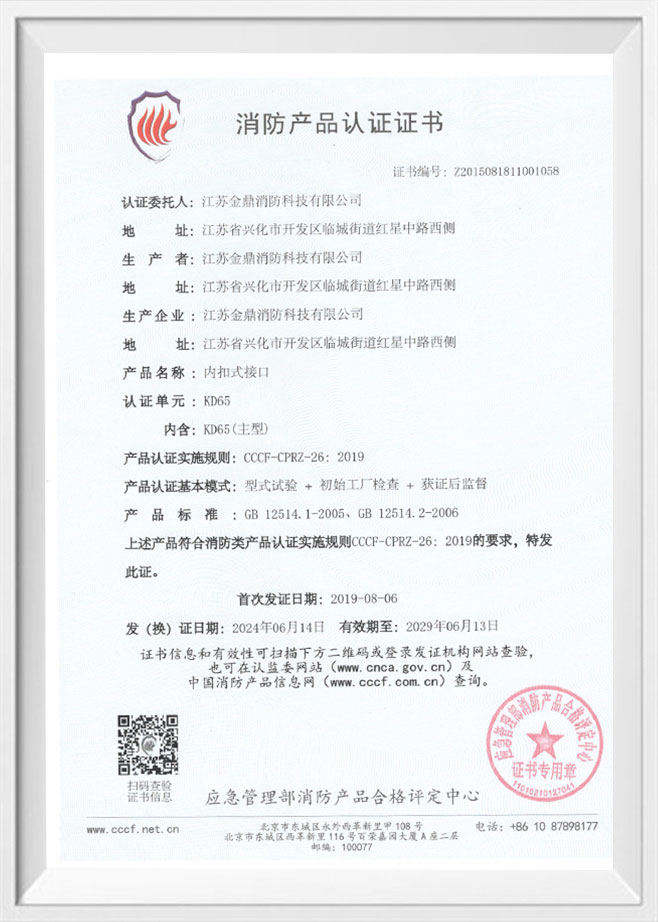 Product certification certificate
